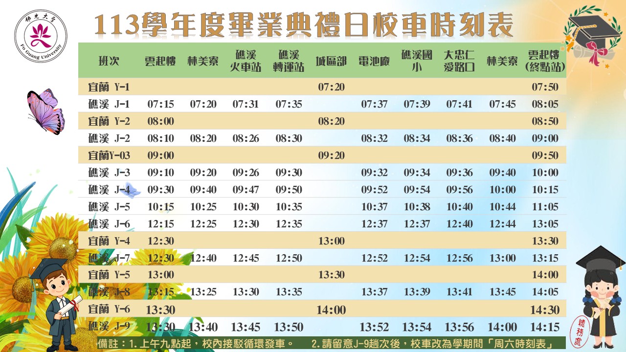 【公告】113學年度畢業典禮日(6/7)交通資訊
